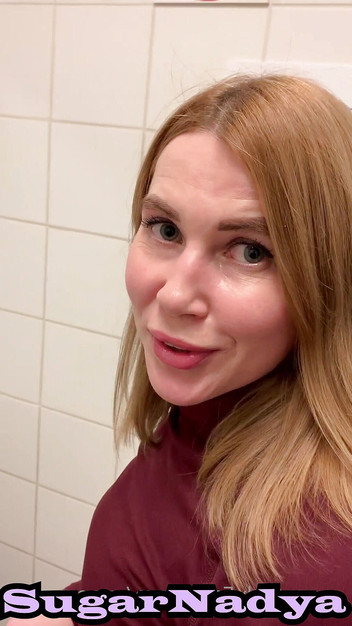 Went into the airport bathroom with SugarNadya, stripped her and fucked her hard, cum all over her ass
