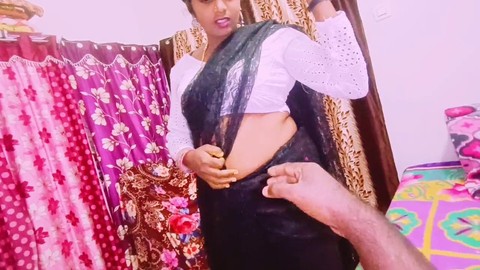 Sexy housewife in dark saree has a messy encounter with her father-in-law while chatting